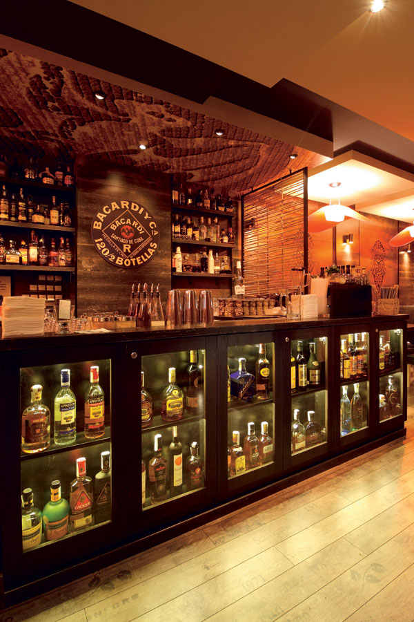 Niekoľko schodov a nálada sa mení. Teplé farby, bambusové doplnky, oranžové svetlo. To je prvý dojem z Rum Clubu, ktorý robí svojmu menu česť – aj vyberavý hosť má šancu vybrať si z ponuky viac ako 200 rumov z celého sveta alebo z drinkov, ktoré tu z nich šikovní barmani pripravujú. Atmosféru Karibiku dotvára aj nevtieravé latino a možnosť zapáliť si k svojmu rumu cigaru – v tomto priestore sa ako v jedinom interiéri z troch dá fajčiť.