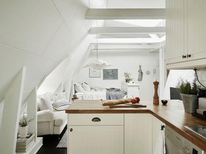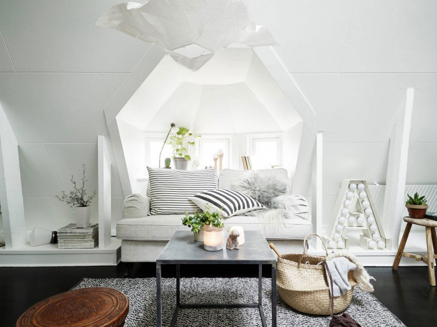 Malý, ale čarovný podkrovný byt v škandinávskom štýle