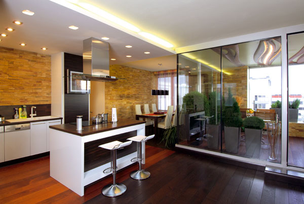 Sklo je znovu objaveným materiálom modernej epochy. Takzvaným technickým tvrdeným sklom sa obkladajú fasády domov, v bytoch nahradzuje tento typ skla celé murované steny, využíva sa ako pochôdzny alebo predelový materiál. Čoraz častejšie sa využíva na obkladanie stien – nie vo forme veľkých klasických dlaždíc, ale v podobe veľkých dosiek so šírkou asi jeden meter, ktoré sa pripevňujú na stenu v súvislých pásoch. Tak možno obložiť celú stenu alebo iba jej časť, a to v akejkoľvek miestnosti bytu. Nezabudnime, že výsledný dojem výrazne ovplyvňuje zvolená farebnosť.