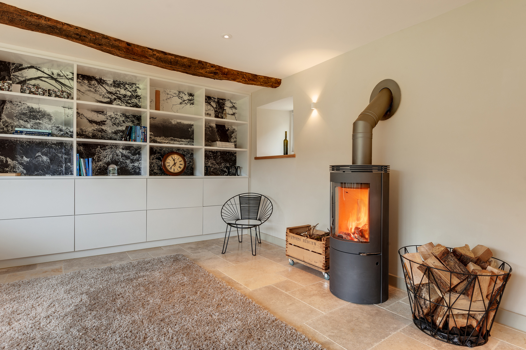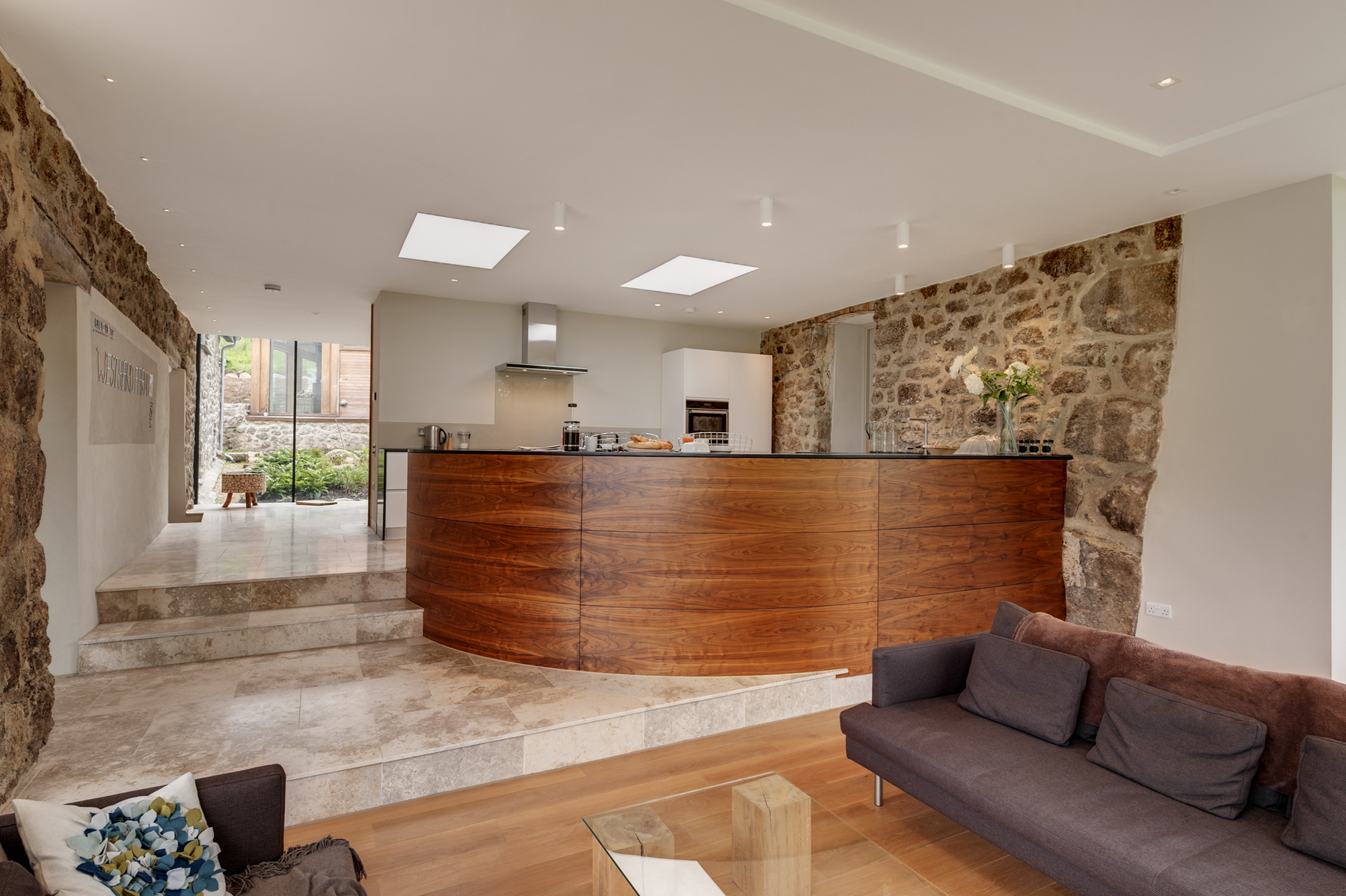 Najskôr bolo potrebné odstrániť nesúvislé rozšírenia a rôzne architektonické pokusy, ktoré vznikli v 50. rokoch 20. storočia, medzi statkom a stodolou. Aby bola zabezpečená úroveň ubytovania, akú rodina požadovala, architekti vložili medzi farmu a stodolu jednopodlažnú sklenenú stavbu z ocele. Vzniklo tak samotné srdce domu, v ktorom sa nachádza moderná kuchyňa s obývacou izbou. Z tohto vzdušného priestoru je priamy prístup do vonkajších záhrad. Sklenená prístavba zároveň slúži ako centrálne stretávacie miesto medzi statkom, stodolou a záhradou. V pôvodných budovách sú umiestnené súkromné obytné priestory a spálne.