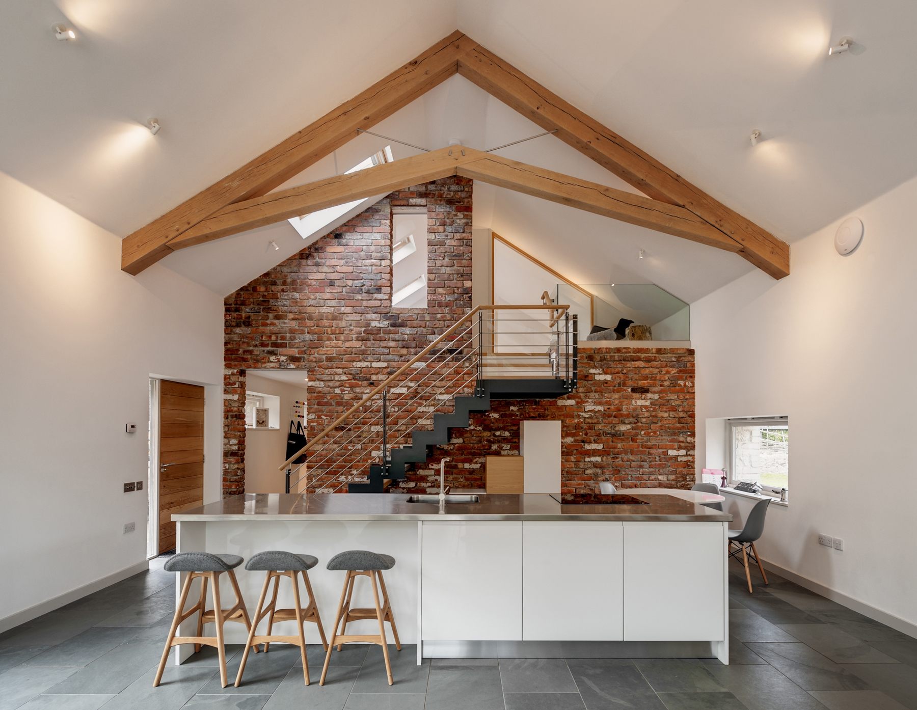 Nachádza sa tu tiež príjemná kuchyňa s obývacou miestnosťou a ďalšie súkromné priestory. Budova dostala aj novú zinkovú strechu odkazujúcu na poľnohospodárske dedičstvo pozemku.