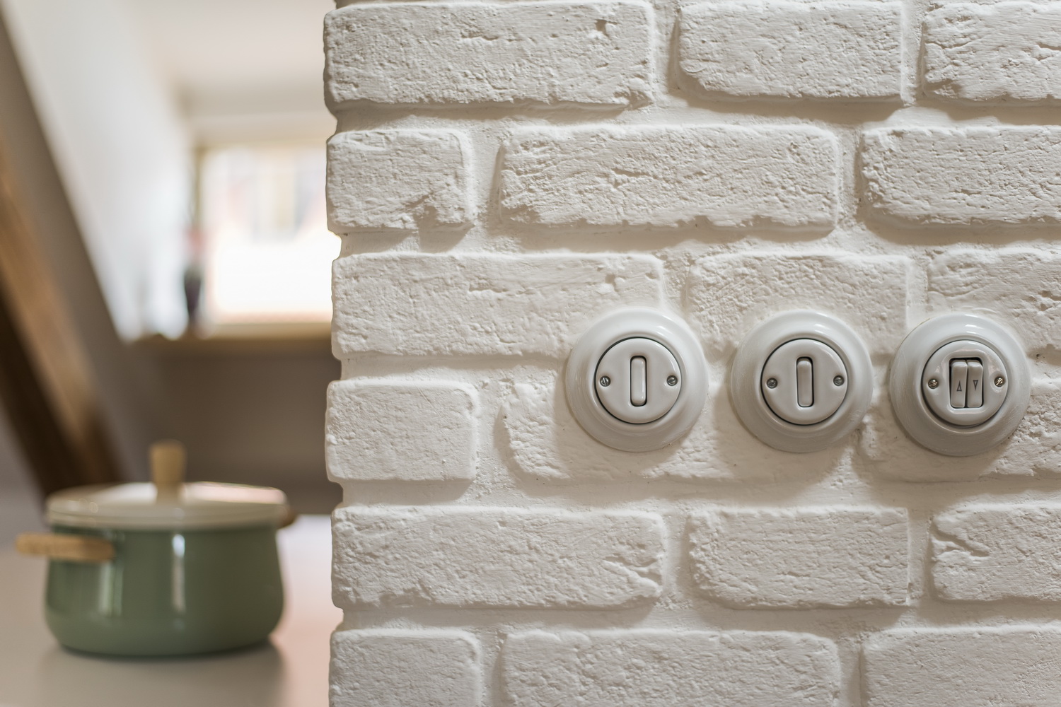 Vyzdvihnúť treba citlivé zladenie farieb, ktoré evokuje retro štýl, rovnako aj obklady v kúpeľni, keramické vypínače, doplnky…