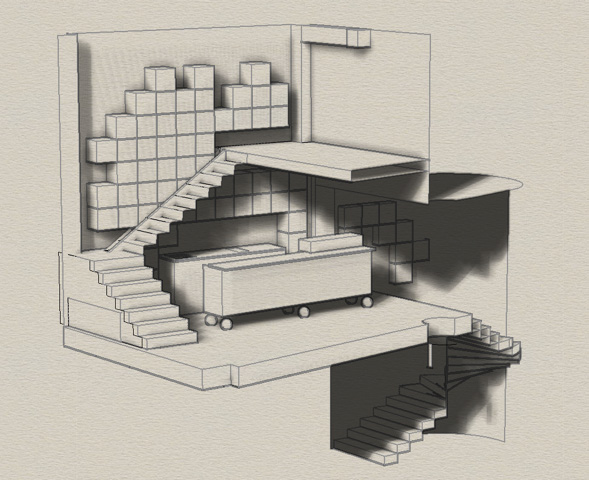 Interiér nie je viazaný na priestor a v prípade zmeny pocestuje so svojím majiteľom. S kockami sa narába plošne forme (regály a police), ale vytvrárajú sa z nich aj rôzne priestorové štruktúry. Využívajú na predaj tovaru a na rôznych akciách mimo kamenného obchodu a sú použiteľné aj na verejnom mieste, kde slúžia ako pop-up shopy.