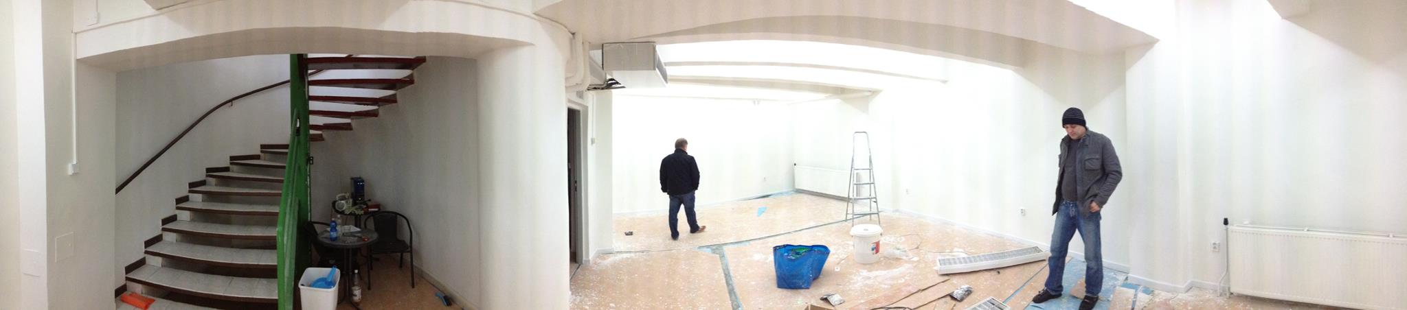 Pohľad z interieru kaviarne, pred dobudovaním schodiska