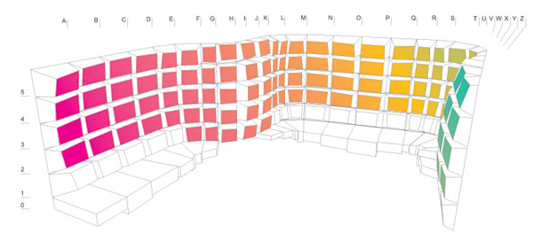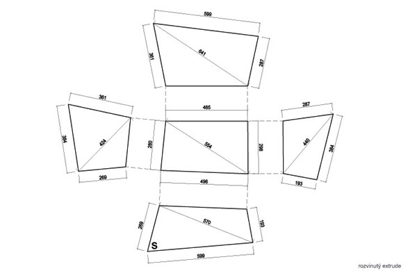 Stenu Lightroomu tvorí stovka unikátnych zrezaných ihlanov – extrudov.