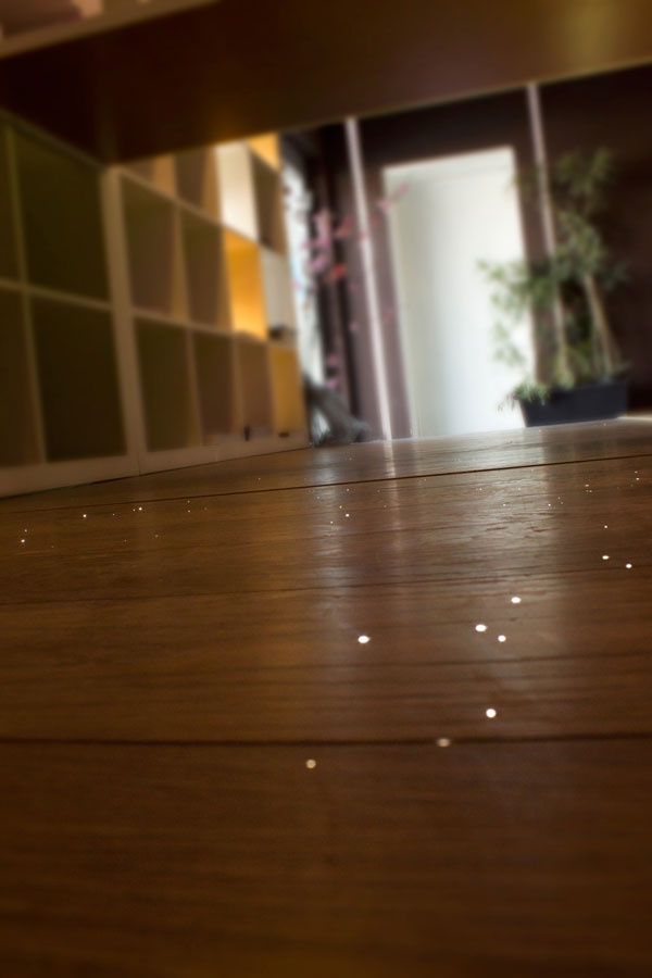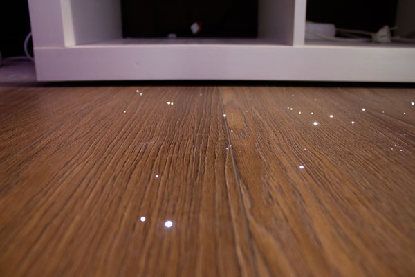 Ide o rovnaký princíp osvetlenia ako pri mozaikách, tu je však nutné počítať s predprípravou do podlahy, do ktorej sa vlákna integrujú. Krásny efekt hviezd či maximálne funkčné nočné osvetlenie využijete najmä v drevených parketách, vonkajšej terase či ako efektné dotvorenie tanečného parketu prípadne ako navigačná pomôcka pre návštevníkov. Špeciálnu verziu vlákien je možné aplikovať aj do podlahy či stien vo fínskej saune!