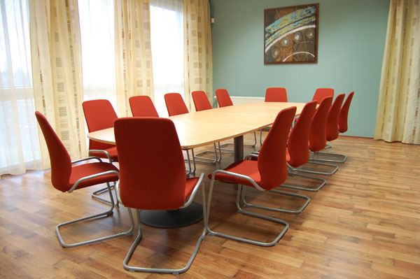 Na 1 NP sa nachádzajú klubovne a konferenčná miestnosť ladená do živých farieb. Tým sa z nej stáva priestor na ľubovoľné využitie či už na zasadnutia obecného zastupiteľstva alebo súkromné posedenia.Verejné priestory tohto typu si vyžadujú najmä praktické a viacúčelové zariadenie. Vítanou pridanou hodnotou je, ak má mobilár vtip a nápad, čo sa správnym výberom jednotlivých kusov podarilo naplniť. V prípade obecného úradu v Pečeňadoch by ešte stálo za to pouvažovať o súčasnejšej farebnosti stien a textílií.