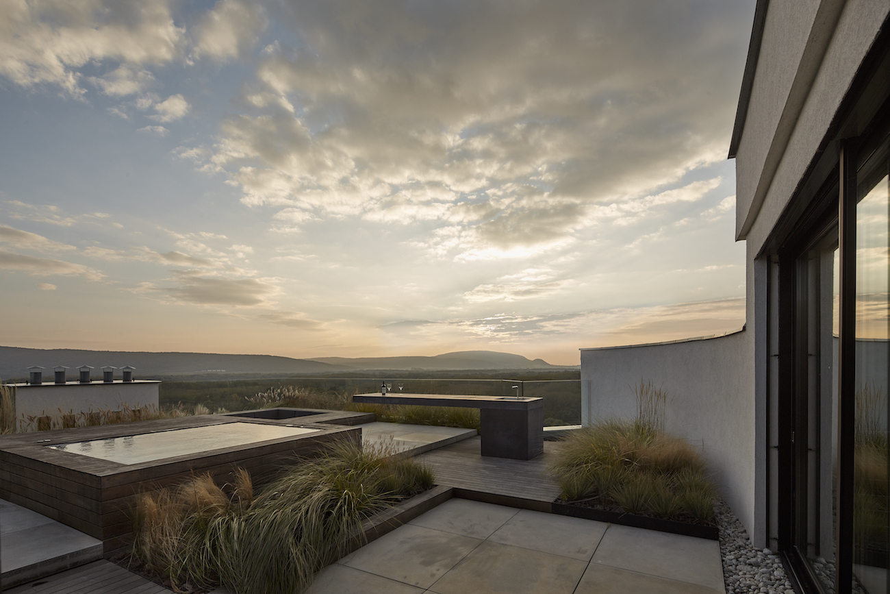 Nemenej interesantné prvky nájdeme aj na priestrannej terase, kde majú domáci svoje súkromné kúpalisko.