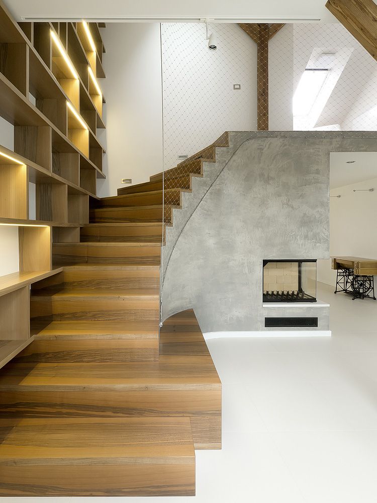 Riešenie veľkorysého podkrovia bolo výzvou. Príliš veľký priestor potreboval návrh, ktorý by koncepčne vyvážil a prepojil odlišné svetlé výšky a rozdielne plochy všetkých miestností. „Aby sme zachovali maximálne plynutie priestoru a otvorených priehľadov, niektoré z rohov sme jemne zaoblili,“ opisujú osobitú ideu realizácie autori z ateliéru A1 Architects.