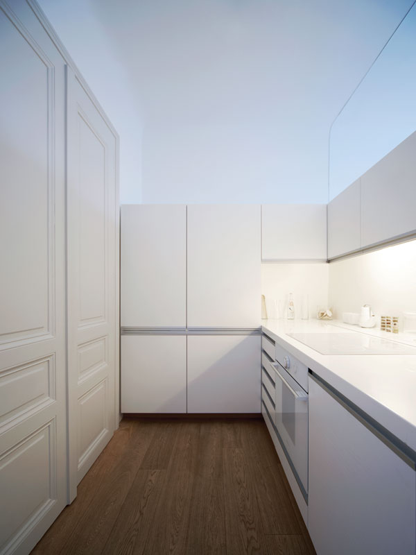 Všetky historické prvky ako dvere a okná sa zachovali a reštaurovali. Medzi novými materiálmi dominuje olejovaná dubová podlaha, transparentné alebo dymové sklo a na bielo natreté drevo.