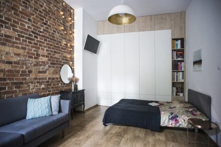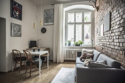 Neveľké štúdio v starom dome vo Vroclave akútne potrebovalo premenu. Umiestniť na 30 m2 všetko potrebné a vytvoriť kvalitný jedinečný obytný priestor, to nebola jednoduchá úloha. Výsledok však stojí za to. Má špeciálnu charizmu, pripomína svoju minulosť, pritom je moderný, poskytuje pohodlie a všetko potrebné na bývanie. Nezaostáva ani estetika.