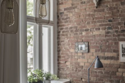 Pôsobivé sú svietidlá kombinované so zlatou farbou – hlavný luster v obytnej miestnosti je biely, ale zvnútra zlatý a nad jedálenským stolom visia tri štýlové svietidlá vytvorené z kovovej sieťky. Finálny interiér má jedinečnú atmosféru v škandinávskom štýle, punc mu dodávajú zlaté a čierne doplnky.