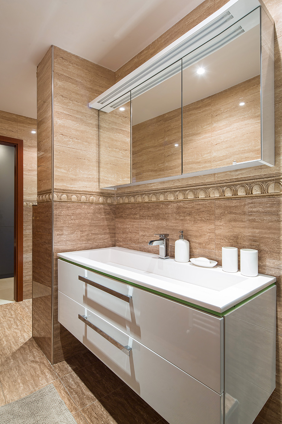 „V byte pôvodne bolo masívne schodisko a kazetová MDF podlaha. To všetko sme museli vybúrať. Majitelia požadovali byt presvetliť, zjednotiť a dispozične vhodne upraviť. Tiež viac prepojiť s terasou. Keďže byt je určený na krátkodobý prenájom, nebolo treba riešiť väčšie úložné priestory,“ vysvetľuje svoj postup Ivana Šustrová.