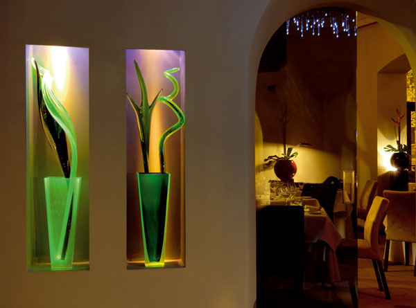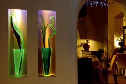 Je pre tvaroslovie skla, svietidiel a podobne určujúci priestor? Alebo je tvaroslovie autonómne? Vo svojej práci lavírujem medzi dvoma pólmi. Dizajn je služba, to je jeden pól. Čiastočne musím rešpektovať, že v Bellevue je nočná prevádzka, ľudia musia vidieť na jedálny lístok, svetlo nesmie prekážať pohľadu na Prahu, nesmú tam byť iba high-tech trendy. Jedna stránka veci teda je, že slúžim zadávateľovi, aby interiér spĺňal jeho požiadavky. Druhou stránkou je, že sa snažím o svoju dizajnérsku hrdosť, aby tam bol môj projekt, moja ruka. V Bellevue vznikol originálny luster, zrkadlá, vázy, misky na stôl. Mojou ambíciou nie je vytvárať týchto interiérov veľa, ale naopak, veľmi málo, iba autorské. Nechcem, aby Praha alebo akékoľvek iné miesto boli zahltené mojimi vecami. Ide mi o osobný vzťah. V ostatnom čase reštauratéri alebo hoteliéri chcú skôr doplniť interiér, kde sú nádherné talianske stoličky alebo úžasné kamenné steny, ale na stole sú obyčajné poháre ako v každej pizzerii. Uvedomia si, že keď tam izba stojí 30 000 korún na noc, nemali by tam byť vázy za 150 korún. Tvaroslovie má doplniť základný interiér.
