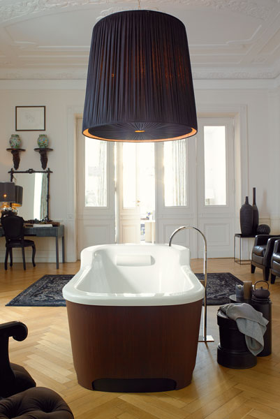 Tchoban: Inšpiráciou mi bola predovšetkým história týchto objektov. Nie história 20. storočia, kde sa už omnoho viac prejavovala tendencia k dizajnovým objektom. Ale skôr 18. a 19. storočie, kde boli kúpeľňové objekty chápané viac ako nábytok, patriaci k životu v byte alebo dokonca na zámku. Chcel som, aby tieto prvky vyžarovali ešte intenzívnejšie, že sa stávajú súčasťou zariadenia kúpeľne ako novo chápaného obytného priestoru.