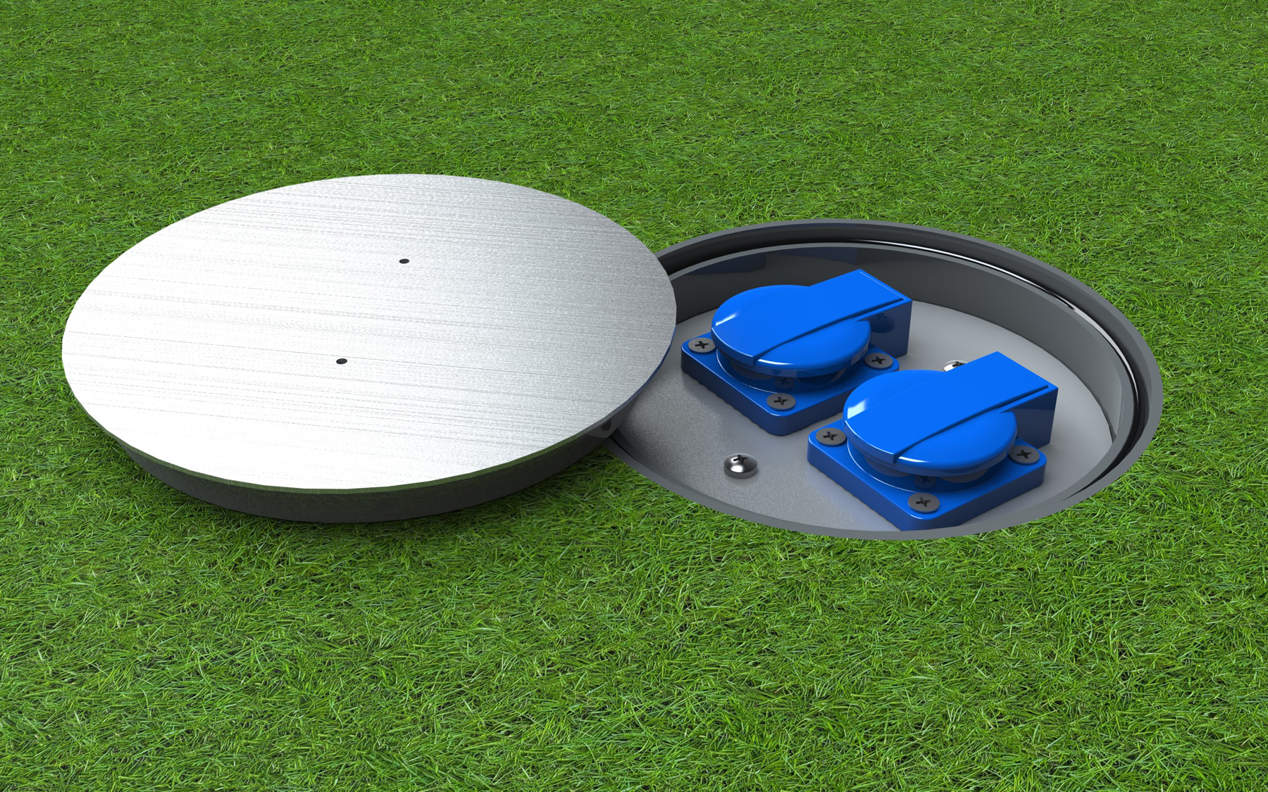 Vonkajšia podzemná zásuvka s potrebným krytím (IP67) proti vode a prachu.