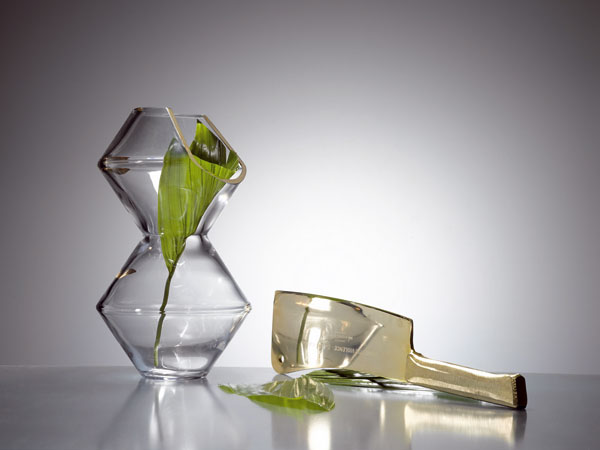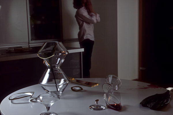 À propos, kolekciu „Domáce násilie“ sme pred dvoma mesiacmi poslali jednému zberateľovi do Ruska. To je práve ten zvláštny osud našich konceptuálnych projektov. Projekt tvorí súbor skla s precízne premysleným dizajnom. Miesta, kde sú poháre, karafa či misa akoby nalomené, rozbité, sú v tejto Golden Edition pozlátené. Fungujú ako dekorácia a veľa ľudí to provokuje. Súčasťou projektu je aj kontroverzná fotografická performancia. Inšpirovali nás novinové články o domácom násilí a zámerne sme vytvorili projekt, v ktorom tento problém nijako nehodnotíme, otvárame ho bez komentára.