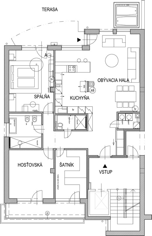 Veľkorysá dispozícia je základom úspešného návrhu. To platí aj pri rekonštrukcii štvorizbového bytu na bratislavskej Kolibe. Hoci bol byt pôvodne určený viacčlennej rodine, nový návrh rieši bývanie pre bezdetný pár, čo dovoľuje kreatívne riešenia.