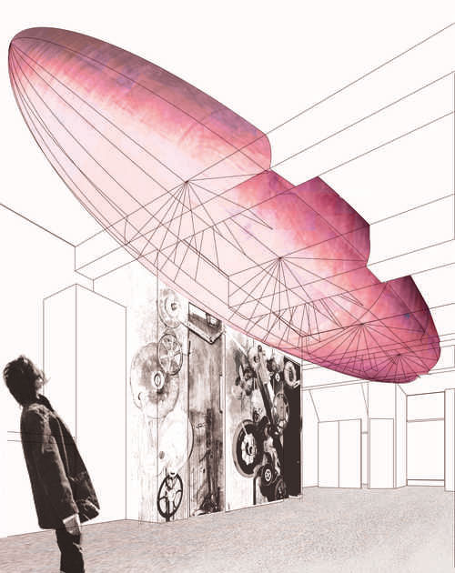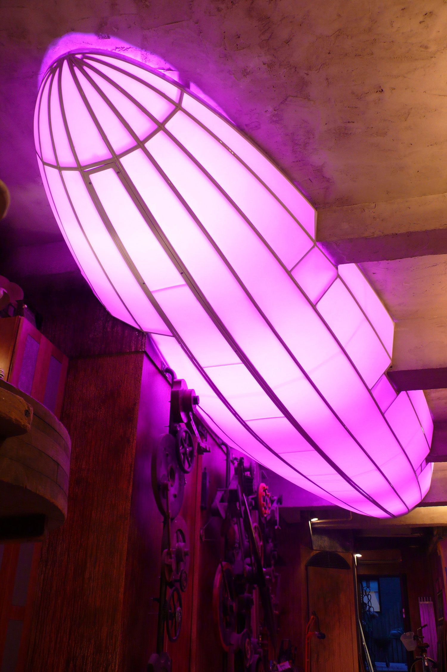 Vchod zaujme sústavou ozubených kolies a kovových častí v štýle vstupného mechanizmu ponorky, ktoré zároveň slúžia ako otvárací systém. Ústredný prvok celého priestoru, ktorý nás privíta už pri vstupe, je umelecké dielo v podobe obrovského svietidla v tvare vzducholode, ktoré je pripevnené k stropu nad vchodom a siaha až do kuchyne. Svietidlo je dlhé 11,5 metra, je možné ovládať ho pomocou špeciálneho softvéru a dokáže svietiť v odtieňoch neuveriteľných 16 miliónov farieb.