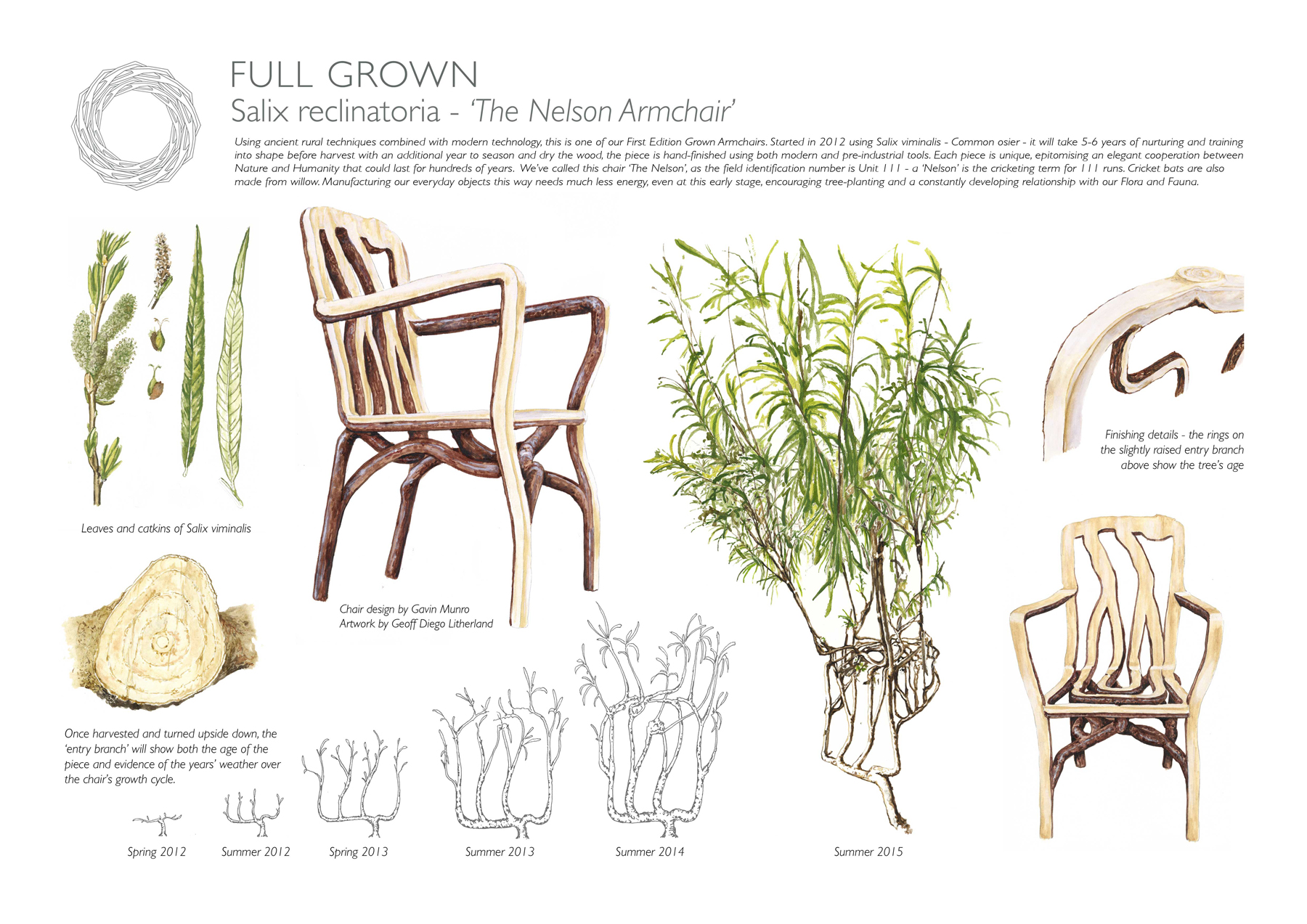Zaujímavý však bol aj prototyp týchto stoličiek zo záhonu – prvá z nich vznikla prepojením štyroch stromčekov, každý pritom tvoril jednu nohu stoličky. Keď stromčeky dosiahli určitú úroveň, dizajnér ich preplietol tak, aby vznikla sedacia časť stoličky a potom, keď zase podrástli, splietol operadlo. Neskôr sa ukázalo, že tento postup je síce zaujímavý, ale zbytočne komplikovaný.
