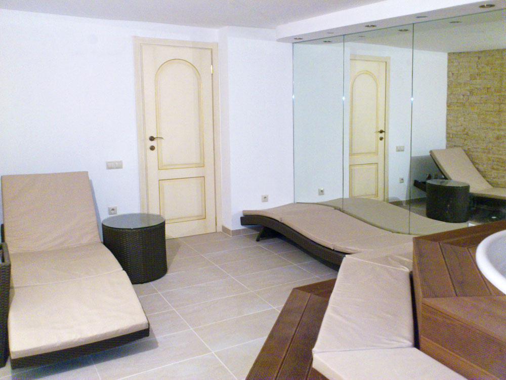 Wellness sa skladá zo štyroch funkčných častí, ktoré na seba vzájomne nadväzujú. Centrálnym prvkom je hydromasážna vaňa, nasleduje sedenie pri okne, oddychová zóna s ležadlami a suchá sauna s kúpeľňou v susednej miestnosti.