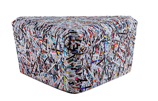 Na milánskom výstavisku Fiera ste tento rok mohli naraziť aj na objekty newyorského dizajnéra Stephena Burksa, ktorý sa spojil so známou talianskou značkou Cappellini pri realizácii projektu Cappellini Love. Kolekcia zahŕňa vázy a misky vyrobené z malých fragmentov skla a tiež súbor nízkych stolíkov vyhotovených z recyklovaného papiera. Projekt vznikol v Južnej Afrike a jeho cieľom bolo integrovať inovatívnou cestou tradičné ručné techniky do štruktúry dizajnu a nájsť medzinárodnú distribúciu. Stolíky sú vyhotovené z pásov skartovaných časopisov (dizajnér použil staré tituly časopisov Wallpaper a Domus) spojených technikou „paper maché“, podobnou kašírovaniu. Povrch bol nakoniec ošetrený netoxickým lepidlom a stužovačom.