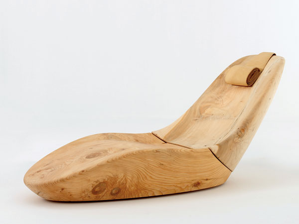 | Chaise longue ako ergonomicky tvarovaná drevená skulptúra z produkcie Riva1920. Dizajn Pininfarina. (Riva 1920) | Ako kávový stolík alebo štýlové sedadlo môže slúžiť drevený objekt s názvom Venere. (Riva 1920) |