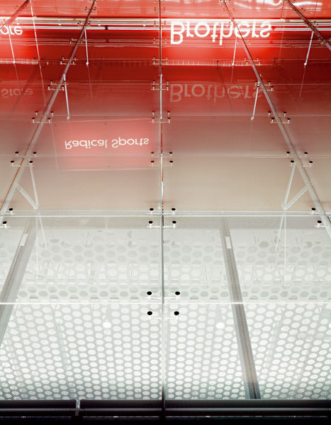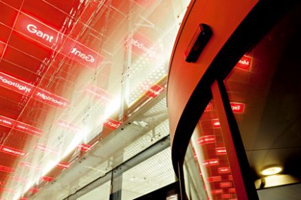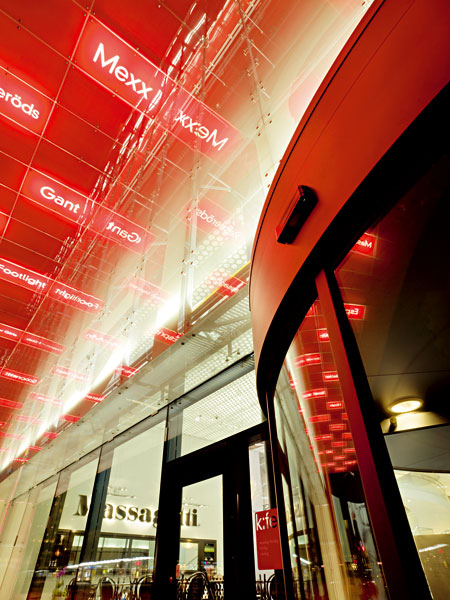 Všetky značky sú v rovnakom svetelnom tóne a napísané rovnakým typom písma. Do úvahy sa neberú logá, prednosť má jednotný štýl. Ľuďom, ktorí sa v móde vyznajú, stačí iba názov – a už vedia svoje. Alebo ak chcete: „Žiadne náhodné dodatky nemôžu rušiť na mieru ušitý dizajn,“ tvrdia autori. Prístrešie so svietiacimi značkami tak vytvára zďaleka aj zblízka jasne viditeľný imidž budovy aj celého nového predmestského centra Štokholmu.