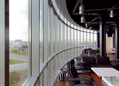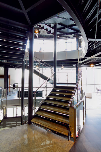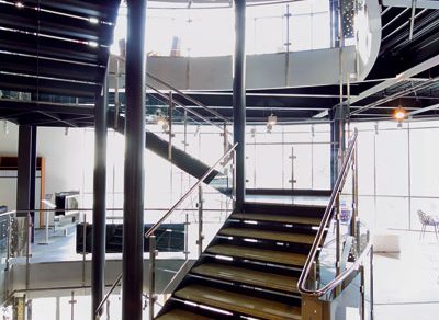 K zaujímavým architektonickým prvkom patrí trojramenné oceľové schodisko. V pôdorysnom ťažisku objektu, v oblúku, je schodisko navrhnuté v tvare konvexného trojuholníka so skleným zábradlím. Hlavný vstup do objektu, ktorý len minimálne zaberá priestor predajnej a výstavnej plochy, je riešený cez turniketové dvere. Tie zabezpečujú len malé úniky tepla z objektu a použili sa aj v I. etape, čím nahradili pôvodnú vstupnú predsieň.