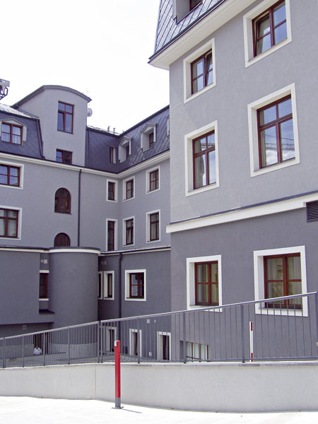 „Pri rekonštrukcii sa, samozrejme, musí vychádzať z existujúceho stavu a daností priestoru. K existujúcej budove sme pristupovali ako k hodnote, z ktorej bolo nie obmedzujúce, ale inšpirujúce pri svojom návrhu vychádzať,“ pokračuje Vladimír Krušinský. A to vidieť nielen na návrhu dispozično-prevádzkového riešenia, ktoré pôvodná konštrukcia pri niektorých priestoroch viac-menej predurčovala, ale aj na pohľadoch z exteriéru. Čelná fasáda zo strany Hurbanovej ulice sa do detailu zrenovovala, aj súčasný vstup v nároží je pôvodným miestom vstupu do budovy, ktorý bol však medzičasom zmenený. Architekti sa rozhodli zachovať aj vináreň v prvom podzemnom podlaží, ktorá má už na tomto mieste svoju tradíciu. Aj trakt kuchyne nadväzujúci na vináreň pôvodne slúžil na tento účel.