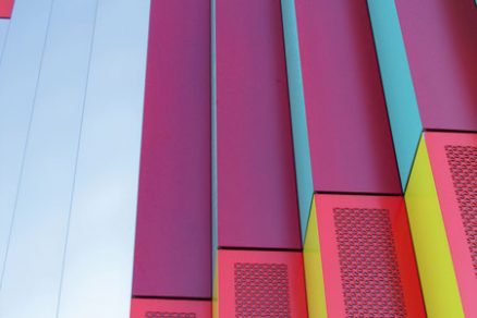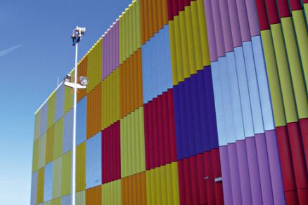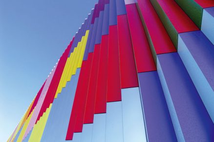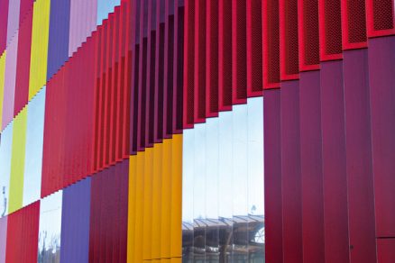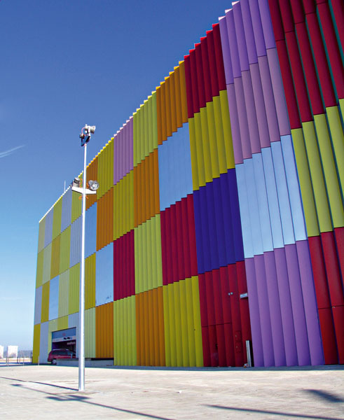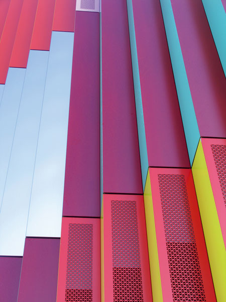 Prizmatickým uložením týchto panelov sa okoloidúcim naskytuje severozápadný a juhozápadný obraz fasády, pričom západná strana je prienikom týchto farieb. Tóny sa obmieňajú v závislosti od miesta, na ktorom stojí pozorovateľ. Pestré polia sa pri prechode pozdĺž budovy rozptyľujú na farebné pruhy, ktoré sa v okamihu skladajú do štvorcov v nových odtieňoch. Červená sa mení na zelenú, žltá na modrú, a to vo viacerých rôznorodých nuansách.