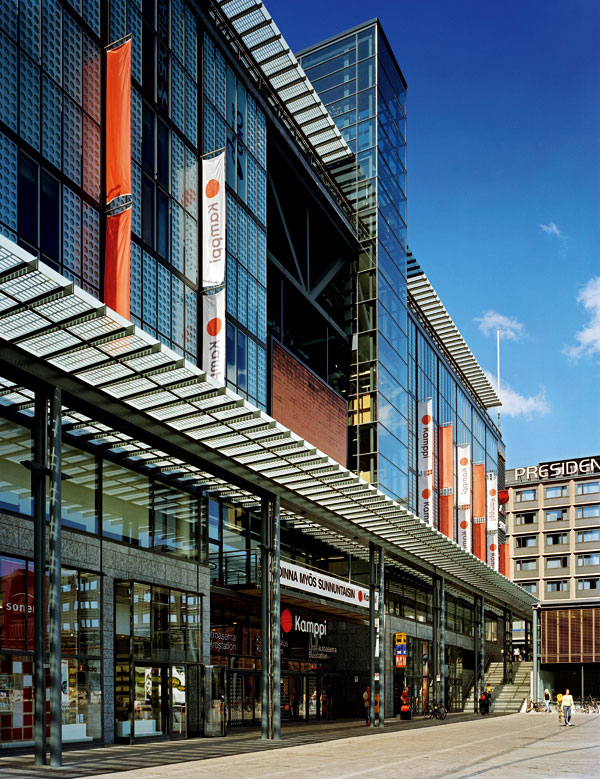 Obchodné centrum, administratívne budovy, obytné súbory, dopravný uzol – to všetko je v Kamppi Centre, ktoré sa svojou výstavbou stalo novým srdcom Helsínk. Nové je teda v tesnom, ba až fyzickom dotyku so starým, s ktorým vedie aktívny dialóg. Historické motívy sa nevtieravo prelínajú s 21. storočím, pričom rozmanitá polyfunkčnosť celého centra nepotláča ľudské meradlo. Naopak, veľmi veľkoryso otvára náruč každému, kto prichádza na zelené námestie Tennispalatsinaukio obkolesené nielen obchodmi, kaviarňami a reštauráciami, letnými i zimnými terasami, ale aj kinom a muzeálnym strediskom.