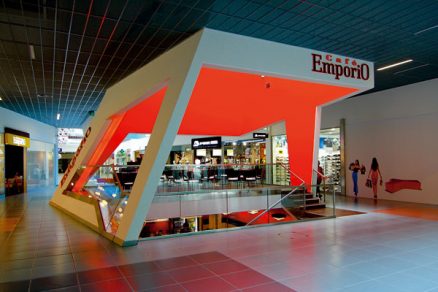 Rozličným farebným riešením ich vnútorných stien sa dosiahli rozličné nálady interiéru. Pri prechode pasážami sa z tmavej zóny vynárajú svetelné studne jedna za druhou, pričom každá svojím odtieňom vyvoláva v človeku iné emócie. Trasovanie naprieč nákupným mólom sa riešilo v jednoduchom okruhu, ktorý pretína krátka pasáž. Popri ostatnej ortogonálnej konštrukcii sa uplatnila aj organická forma. Ide o solitérny objekt kaviarne v centrálnom priestore strediska. Sieťovaná konštrukcia je zavesená na úrovni druhého nadzemného podlažia a horizontálne sa tiahne pozdĺž galérie ako živočích na „vratkých“ nohách – pilieroch, ktoré spájajú strešnú konštrukciu s podlahou.