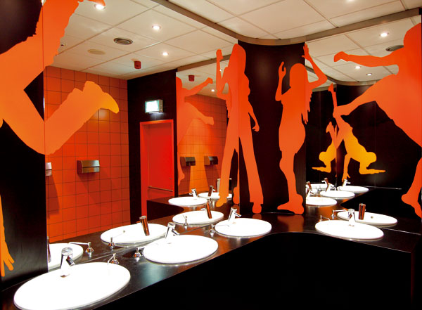 Fasáda dvojpodlažnej časti objektu komunikuje s okolím prostredníctvom figurálnych motívov v dynamickej polohe, ktoré sa opakujú aj v interiéri, napr. na toaletách, a ktoré majú evokovať ľudskú aktivitu. Dôležitým dotvárajúcim prvkom objektu sa má stať zeleň. Keď sa rozrastie, prispeje k postupnému rozčleneniu fasády. Na vonkajšej tvári centra sa objavujú farebné kombinácie, a to tak, aby sa docielila požadovaná mierka a nenásilné zapojenie do riečnej nivy.