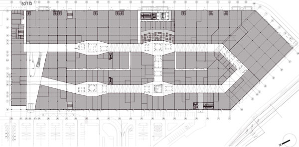 Hra s denným osvetlením je myšlienkou celého vnútorného konceptu. „Svetlo sa vo viacerých dôležitých bodoch vpúšťa dovnútra tak, aby sa prejavilo na miestach, kde sa hustota vzťahov zväčšuje – v námestíčkach, kaviarňach či zónach rýchleho občerstvenia,“ opisuje architekt. Vzhľadom na to, že pozemok sa nachádza v urbanisticky málo rozvinutej zóne mesta, jediným meradlom komunikácie objektu s prostredím je okolitá krajina.