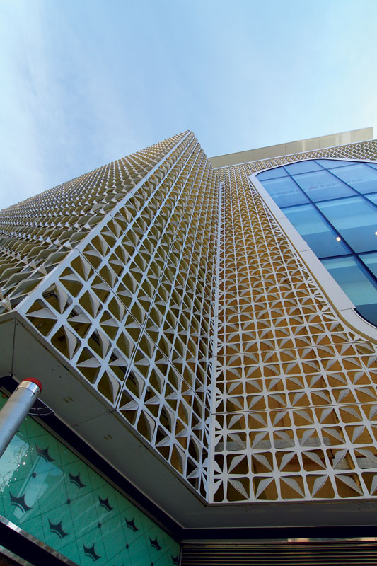 Architektonický návrh a kompletná projektová dokumentácia rekonštrukcie s futuristickým vzhľadom sú z dielne firmy Delta Projektconsult v spolupráci s architektonickým ateliérom Love architecture and urbanism. Obchodný dom dostal novú fasádu, ktorá na budove úplne zamietla stopy minulého storočia a nánosy rôznych štýlov. Jednotiacim prvkom je predsadená plechová konštrukcia v štýle grafickej potlače obohatenej o trojdimenzionálny efekt. Zalomené lístky základného florálneho elementu umožňujú zaujímavé podfarbené priehľady. Tento grafický prvok je zároveň základným komunikačným a identifikačným znakom. Z rôznych uhlov je exteriérový vizuál vždy iný, lákavý pre návštevníkov svojou ornamentálnosťou či farebnosťou. Na hlavnej fasáde je niekoľko organicky tvarovaných okenných otvorov, ktoré prezrádzajú náplň jednotlivých poschodí. Citlivo zvolené fasádne línie preberajú vnútornú formu. Napriek nezanedbateľnej veľkosti budovy práve mäkké tvary a kombinácia pastelových odtieňov zelenej v kontraste s bielym náterom kovovej fasádnej konštrukcie pôsobia veľmi príjemne. Do mäteže bilbordov, reklám, nákupnej horúčky a dopravného ruchu sa autorom podarilo vniesť kúsok originálnej sviežosti. Nočné osvetlenie obchodného domu ešte viac zdôrazňuje fantastický svet vnútri.