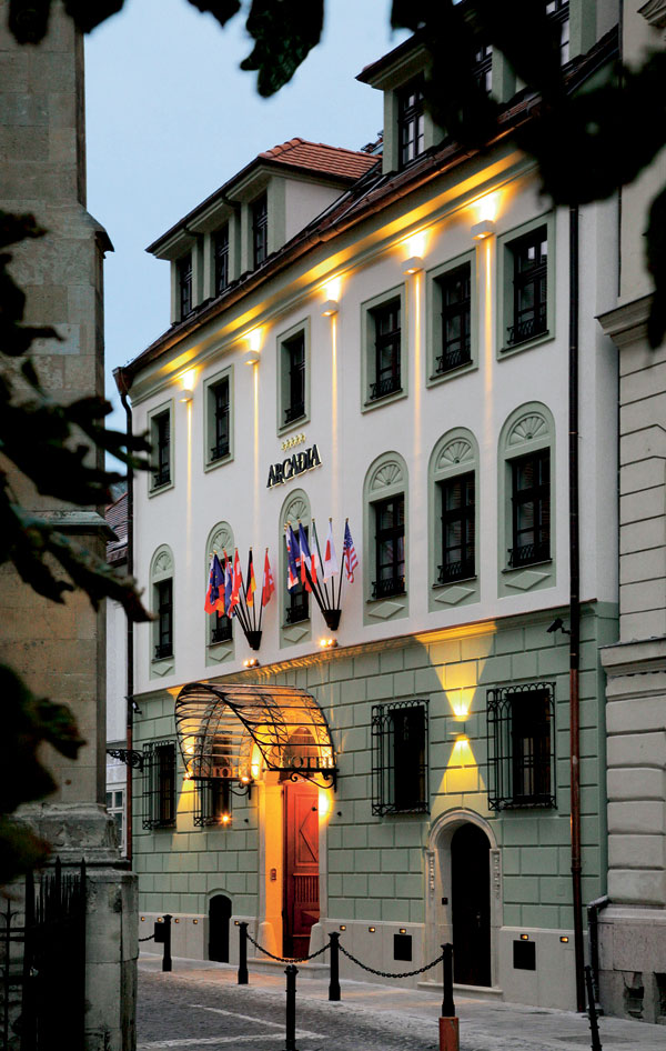 Päť hviezdičiek svieti už aj na bratislavskom hotelovom nebi. Hotel Arcadia šarmantne premenil chátrajúci meštiansky dom pochádzajúci až z 13. storočia na budovu, ktorá svojou atmosférou vložila ďalšie vydarené architektonické sklíčko do pôdorysu Starého Mesta. Arcadia evokuje ústredné renesančné nádvorie vnútri stavby a svojím názvom zároveň aj idylickú krajinu snov. Tá je v tomto prípade zrekonštruovaná do komfortu luxusného hotela. „Jeho čaro má byť najmä v poskytovaní služieb,“ zdôrazňuje Milan Nemec, výkonný riaditeľ investorskej spoločnosti Urbia Holding. Súčasne však dodáva, že čaro je vykúpené poriadnou porciou snahy o harmonické vyváženie striktných predstáv pamiatkarov, aplikácie špičkovej technológie a tvorivých ambícií architektov.