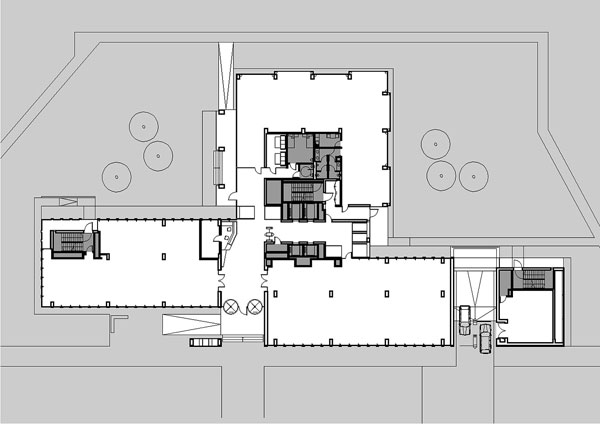 Obdĺžnikový pozemok je zasadený do pomerne nesúrodého prostredia – z dvoch strán susedí s rušnými ulicami, z ďalších dvoch s objektmi neustále meniacimi svoju tvár. Práve preto sa architekti rozhodli riešiť komplex ako samostatný areál, ktorý sa uzatvára zvonku a otvára dovnútra bloku. Zmyslom základnej autorskej kompozície je definovať charakter okrajových a centrálnych administratívnych zón.
