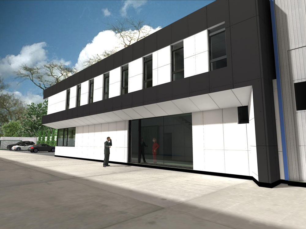 Jednoduchú pozdĺžnu hmotu tmavej fasády (Fundermax) vhodne dopĺňa bielaštrukturovaná omietka (Caparo)l.Administratívna budova je navrhnutá v pôvodnom areáli JRD, s určením pre špedičnú firmu. Ide o menšiu spoločnosť, ktorá nepotrebuje rozľahlé plochy, preto má dvojpodlažný projekt v menšom meradle prehľadnú dispozíciu s komfortným riešením priestorov. Okrem samotnej stavby administratívy komplex dopĺňajú aj skladový priestor a spevnené plochy s parkoviskom.