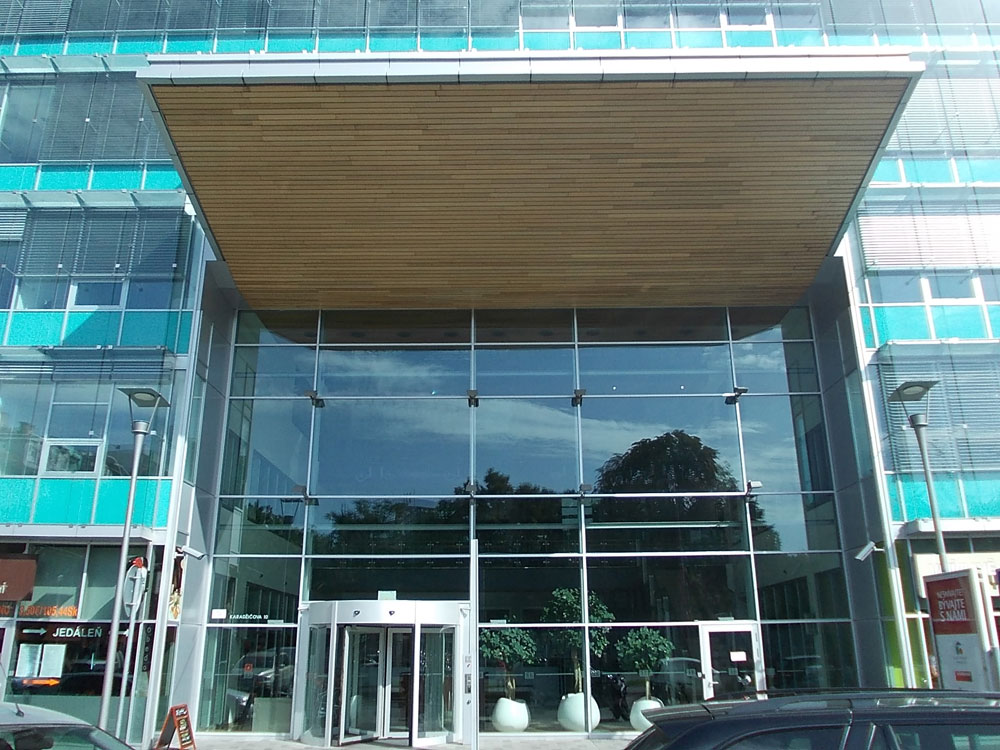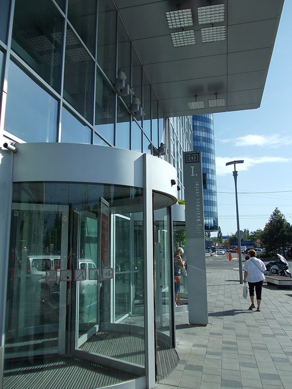 Exteriérový vstupný priestor budovy Tower 115 v Bratislave