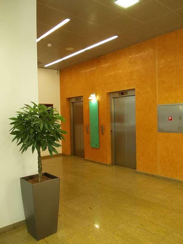Zaujme použite skla, dreva v podhľadoch komunikačných koridorov a ich bočnej povrchovej úpravy.