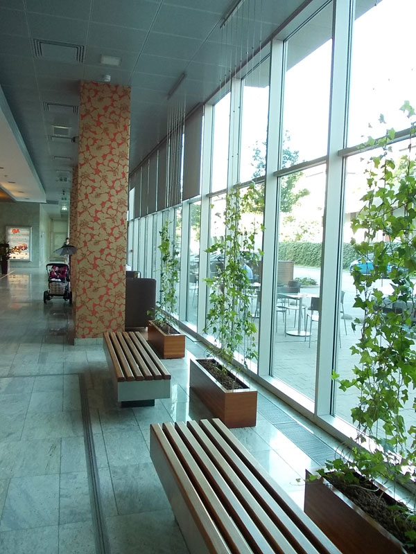Sedenie pri zasklenej stene a kvetináčovej zeleni