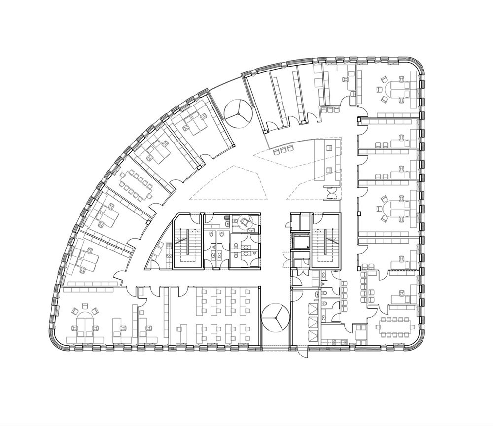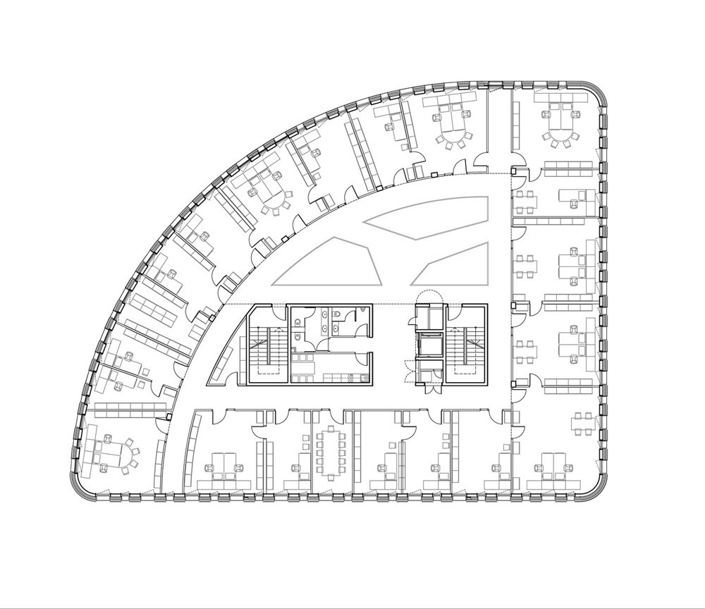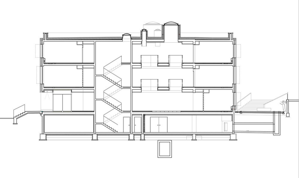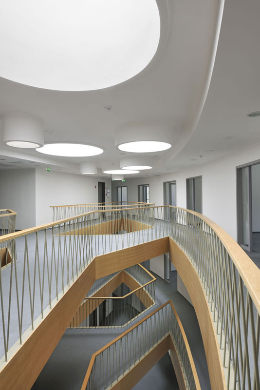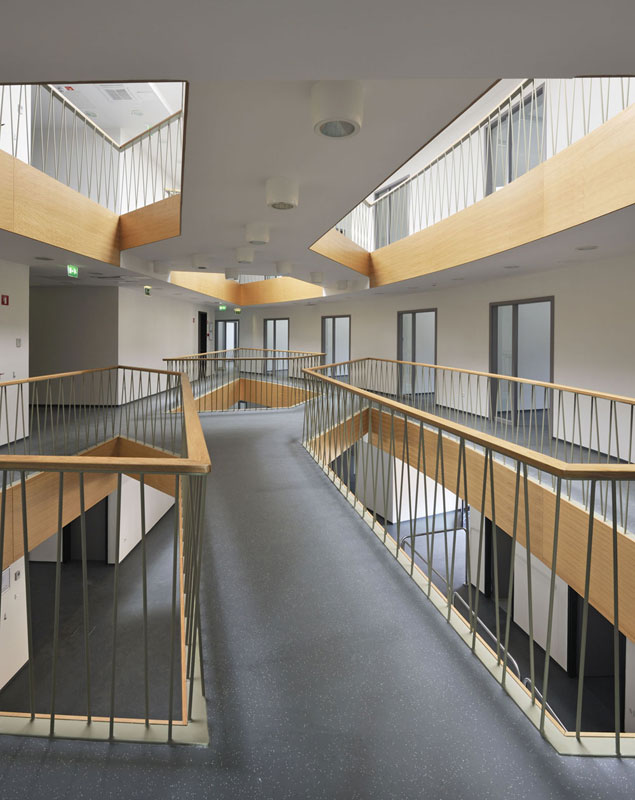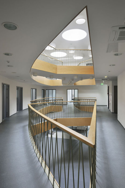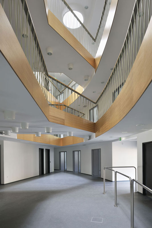 | Prirodzené svetlo sa do átria dostáva cez kruhové svetlíky. | Vstupná hala |