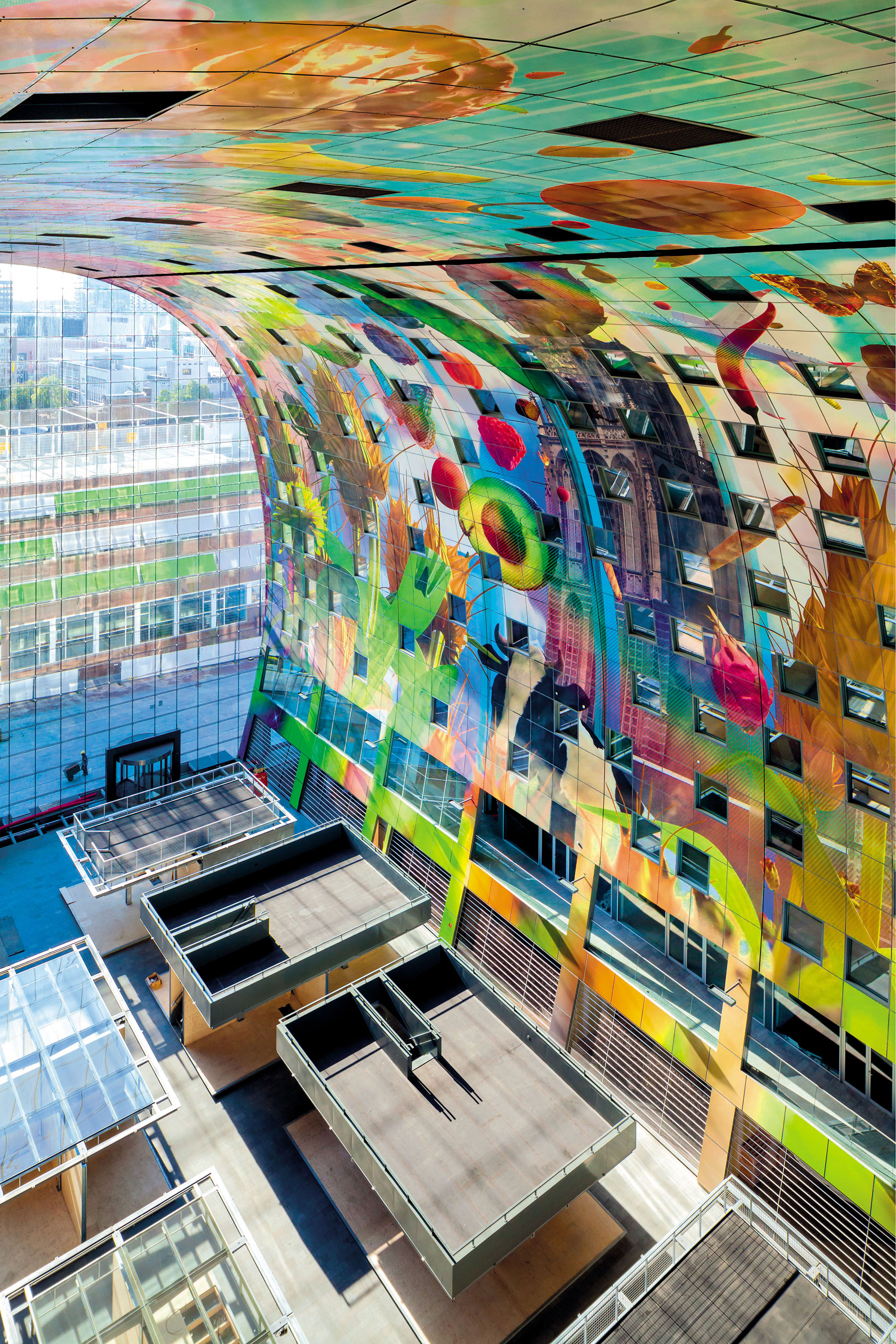 Vnútorný oblúk, ktorý je vlastne akousi interiérovou fasádou, pokrýva 4 500 hliníkových panelov s rozmermi 152 × 152 cm, priskrutkovaných na drevený rošt. Sú 2 mm hrubé a perforované, aby absorbovali hluk z haly, čím prispievajú k výbornej akustickej pohode. Na týchto paneloch, ktoré tvoria azda najväčšie puzzle s plochou 11 000 m2 v Európe, je zobrazené výtvarné dielo s názvom Roh hojnosti. Vytvorila ho dvojica rotterdamských umelcov Arno Coenen a Iris Roskam. Päťvrstvová digitálna tlač bola zrealizovaná pomocou Pixar Animation softvéru s 3D ilúziou čerstvých produktov, ako sú zelenina, ovocie, pečivo, navyše je tam aj veža neďalekého kostola Laurenskerk.