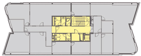 Lokalita sľubovala priaznivú polohu pre viditeľnú propagáciu budovy. Avšak samotný pozemok, pozdĺžne vsunutý medzi dvoch susedov a z tretej strany ohradený oporným múrom oddeľujúcim parcelu od neďalekej diaľnice, bol už náročnejšou výzvou. Cieľ investora – vyťažiť z pozemku maximum – bol jednoznačný. Z tejto definície sa odvíjala úloha architektov – vymyslieť dizajn budovy.