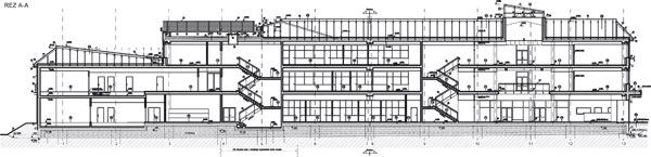 Členenie budovy vychádza z jej funkčno-prevádzkových vzťahov. Hlavný objekt má pavilónový charakter. Základná dispozičná os nadväzuje kolmo na prístupovú komunikáciu s hlavným vstupom a na bočné trakty. Tie sa na každom podlaží napájajú na hlavnú horizontálnu komunikáciu s dvomi schodiskami. Vstupné foyer má otvorený charakter, priestor vertikálne prechádza cez dve podlažia. „Súčasťou prízemia sú rokovacie priestory, jedáleň s ohrevom a výdajom stravy či bufetom. Ďalej technologické priestory na vykurovanie, vzduchotechniku, rozvodňu NN, servery a priestor registratúry na archivovanie dokladov,“ hovorí Ivan Šurina zo spoločnosti TDI-Kompleting, ktorá vykonávala stavebno-technický dozor počas realizácie stavby.