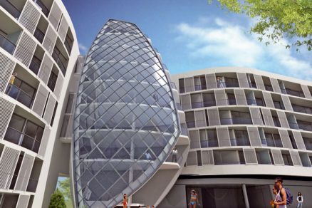 Funkčne sa objekt člení na dve časti – na verejnú zónu so vstupom, kaviarňou, reštauráciou, kongresovým centrom, oddychovým wellness centrom a na privátne ubytovacie priestory – apartmány. Objektu poslúži aj veľká zazelenaná terasa s malým vonkajším bazénom. Vnútorná plošina bude prepojená s riekou mólom cez ochranný val, ktorého súčasťou je aj cyklistická trasa. Bytová časť sa riešila formou samostatných apartmánov, ktoré dokážu fungovať nezávisle od spoločných častí. Apartmány sa však dajú využívať aj ako hotelové izby s celým súborom služieb. Takéto riešenie umožňuje predaj apartmánov klientom, ktorí sa sami rozhodnú, ako budú apartmán využívať – buď na permanentné bývanie, respektíve ako privátny rekreačný apartmán, alebo na jeho prenájom, prostredníctvom ktorého si môžu v čase svojej neprítomnosti zabezpečiť návratnosť vstupnej investície do kúpy nehnuteľnosti.