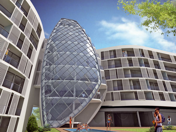 Hlavný motív„Najdôležitejším argumentom pre výstavbu Blue Wave Apartments je možnosť celoročného využitia tejto lokality. Je to hlavný predpoklad rýchlej návratnosti vstupných investícií pre developerov, ale hlavne pre majiteľov rekreačných nehnuteľností,“ uviedol Štefan Bernát, predstaviteľ investorskej spoločnosti Blue Wave Development, s. r. o. Komplex využije pozemok bývalého autokempingu v areáli tradičnej rekreačnej oblasti Sĺňava. Komplex bude pozostávať z apartmánového domu a takzvanej dependance, pozostávajúcej zo samostatných bungalovov, objektu vodného sveta a záhradnej reštaurácie s recepciou. Obidve súčasti postupne vyrastú vo dvoch etapách projektového riešenia. Po ich zrealizovaní vznikne na brehu Sĺňavy areál so širokou ponukou služieb a ubytovania. Apartmánový dom, ktorého výstavba bude súčasťou prvej fázy projektu, navrhli architekti z ateliéru SPDe, s. r. o. ako centrálny objekt celého areálu s vlastným vstupom a samostatnou prevádzkou.