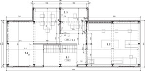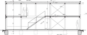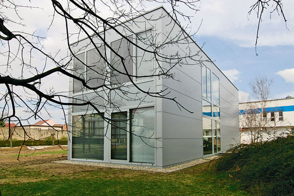 Dvojpodlažný objekt má jednoduchý obdĺžnikový tvar v pôdoryse aj v pohľadoch. Jeho maximálne plošné rozmery sú 15,42 × 6,69 m. Je riešený ako jeden dilatačný celok bez podpivničenia. Opláštený skelet rámového typu tvoria oceľové nosníky typu HEA spájané skrutkovaním. Skelet je priečne zavetrený oceľovými tiahlami a  obvodovým plášťom z  PUR panelov hrubých 100 mm. Stropnú a  strešnú konštrukciu tvoria oceľové profily typu IPE, na ktoré sa ukladala ľahká podlahová strešná skladba. Základy sú z prefabrikovaných železobetónových pätiek v kombinácii so základovými pásmi.