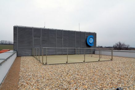 Ide o dve tepelné čerpadlá NIBE LWSE 24 zapojené do kaskády za sebou s tým, že medzi sebou komunikujú a fungujú tak, aby mali nabehnutý rovnaký počet motohodín. Medzi tepelnými čerpadlami a systémovými okruhmi je umiestnená akumulačná nádoba s objemom 1 000 dm3. Čerpadlá majú menovitý tepelný výkon A-7/W35 Q = 18,5 kW, menovitý chladiaci výkon A35/W15 Q = 27,6 kW. Ich optimálna prevádzka funguje na 90 až 95 % tepelnej kapacity, čo bola vypočítaná spotreba tepelných strát tejto budovy. Aj napriek mrazivým dňom počas uplynulej zimy pracovalo iba jedno čerpadlo. Teda aj v horších klimatických obdobiach tak stačil polovičný výkon, než na aký bol projektovaný. I tak sú v zálohe v každom čerpadle elektrické špirály s príkonom 3 × 3,0 kW, ale doteraz boli iba v polohe poistnej investície. Vysoká je aj tepelná zotrvačnosť budovy, systém kúrenia je dostatočne pružný. Minimálny je aj úbytok tepla v budove a len málokedy sa zapína kúrenie. Tento stav zabezpečuje aj nútená výmena vzduchu s rekuperáciou. Aj vzduch, ktorý spätne prichádza do kancelárií je po rekuperácii dohrievaný na 22 stupňov Celzia, čiže aj rekuperáciou vzduchu sa udržiava komfortná teplota vzduchu.